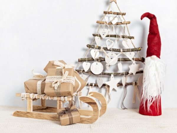 - Árbol alternativo: Considere árboles no tradicionales como plantas en macetas o árboles de madera minimalistas que puedan reutilizarse o convertirse en abono después de la temporada.