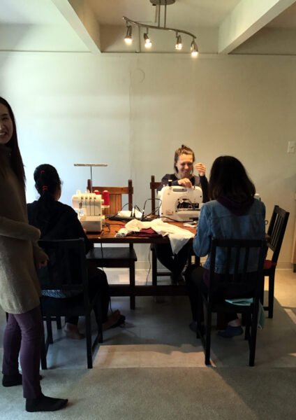 - Considere traer una caja de donaciones. La gente es muy generosa. Con algunos de los fondos donados, compramos la máquina de coser overlock usada que mencioné anteriormente. Todo el hilo también se compra con donaciones.