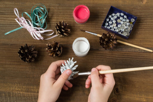 - Haga que los niños recolecten ramas, conos y hojas al aire libre para crear sus propias decoraciones.